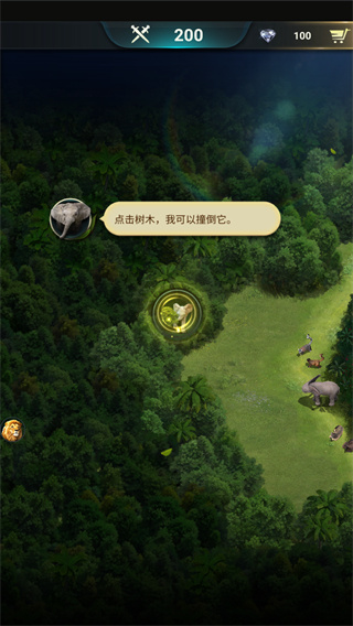 5、点击旁边的树木,小象可以将这些树木撞到,从而获得更大的家园建造空间;