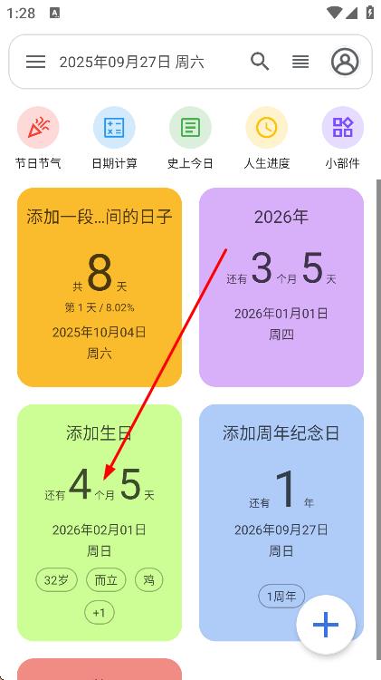 1、打开app,在主界面中点击要修改生日日期的卡片。