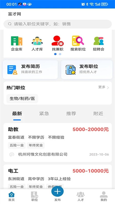 富才网app是一款优质实用的在线招聘的应用软件,通过这款软件用户可以随时随地的进行招聘求职,提供了十分丰富的工作类型,让用户可以随时轻松地进行求职招聘,是一款提供海量优质岗位信息的在线招聘求职的平台,涵盖了教育和互联网等多种类型的岗位信息。
