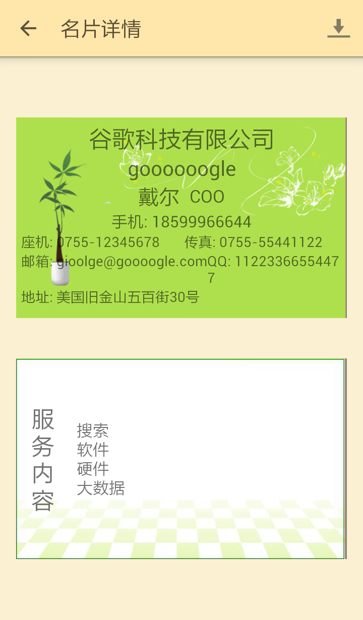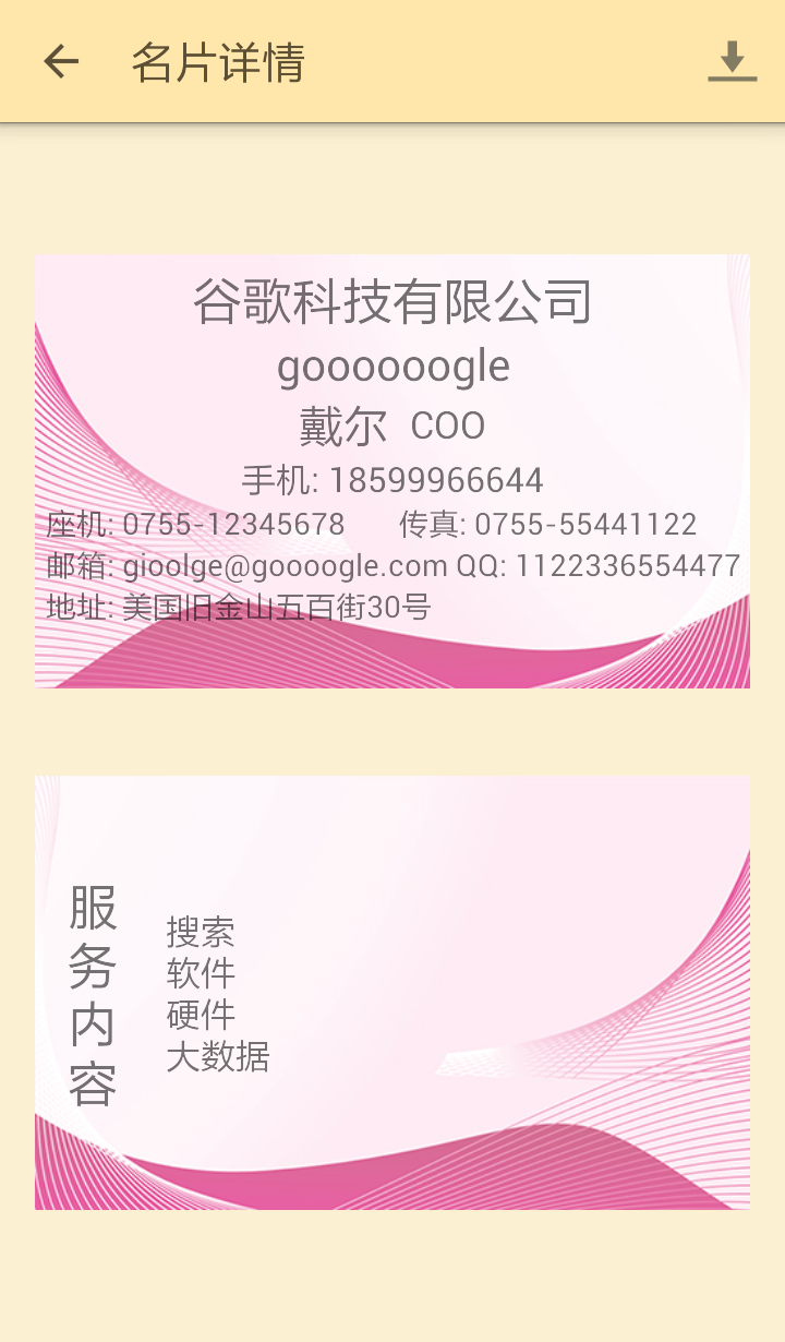 应用操作简单,只需要输出自己基本信息就可以为您生成名片