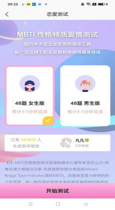 MBTI恋爱测试app是一款最近非常热门的趣味恋爱测试软件,其中包含了超多有趣的功能,可以给用户带来多样的体验感,并且软件当中能够带来各种恋爱火花,让双方的恋爱延长更久,同时软件整体的页面设计整洁完全没有广告的打扰,用户可以放心使用。