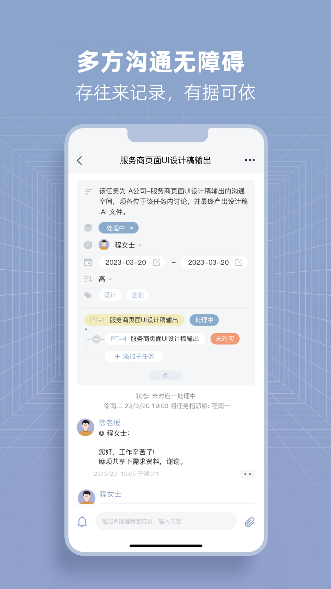 2、权限设置:根据需求设置不同角色的权限,确保敏感信息的保密性,对工作任务进行精细化的管理;