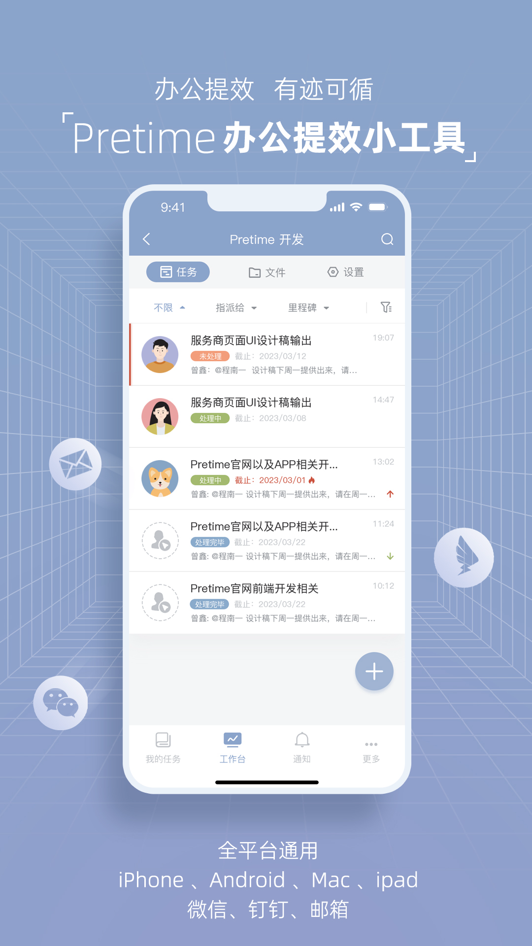 pretime app是一款非常好用的智能移动办公辅助软件,有了这款软件,能够有效的提高大家的办公效率,提供通讯交流、考勤打卡、员工管理等实用功能,丰富齐全的办公工具和办公服务都是免费使用,专为办公人员打造的办公神器,让大家在工作中都能轻松上阵。