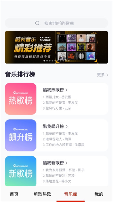 云酷听音乐软件是一款专门给喜欢听歌的小伙伴打造的音乐软件,不仅能够畅享音乐,还能在线分享自己对于音乐的体验,这样能够了解到更多热门的音乐以及不同题材的乐曲,对音乐了解更多,每天软件上的音乐排行榜都会实时更新,用户可以放心收听,一定能够带来更加多样的播放过程,同时还会更新一些常见歌手的新歌,如果有你喜欢的歌手可以直接关注,这样有发新歌或者歌单都能第一时间告知用户。