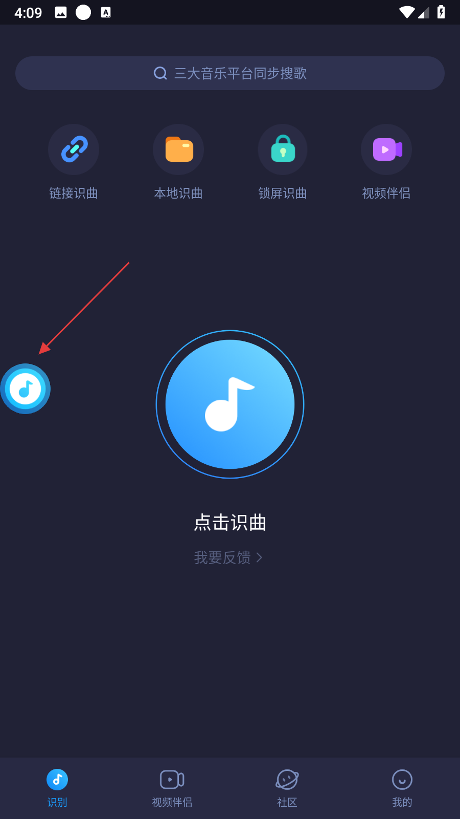 2、支持悬浮窗口音乐识别,随时都能够地通过悬浮窗口,智能识别正在播放的歌曲;