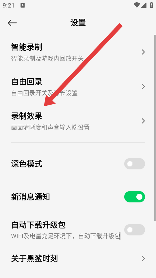 2、在设置界面中,点击录制效果选项,进入录制效果设置页面。