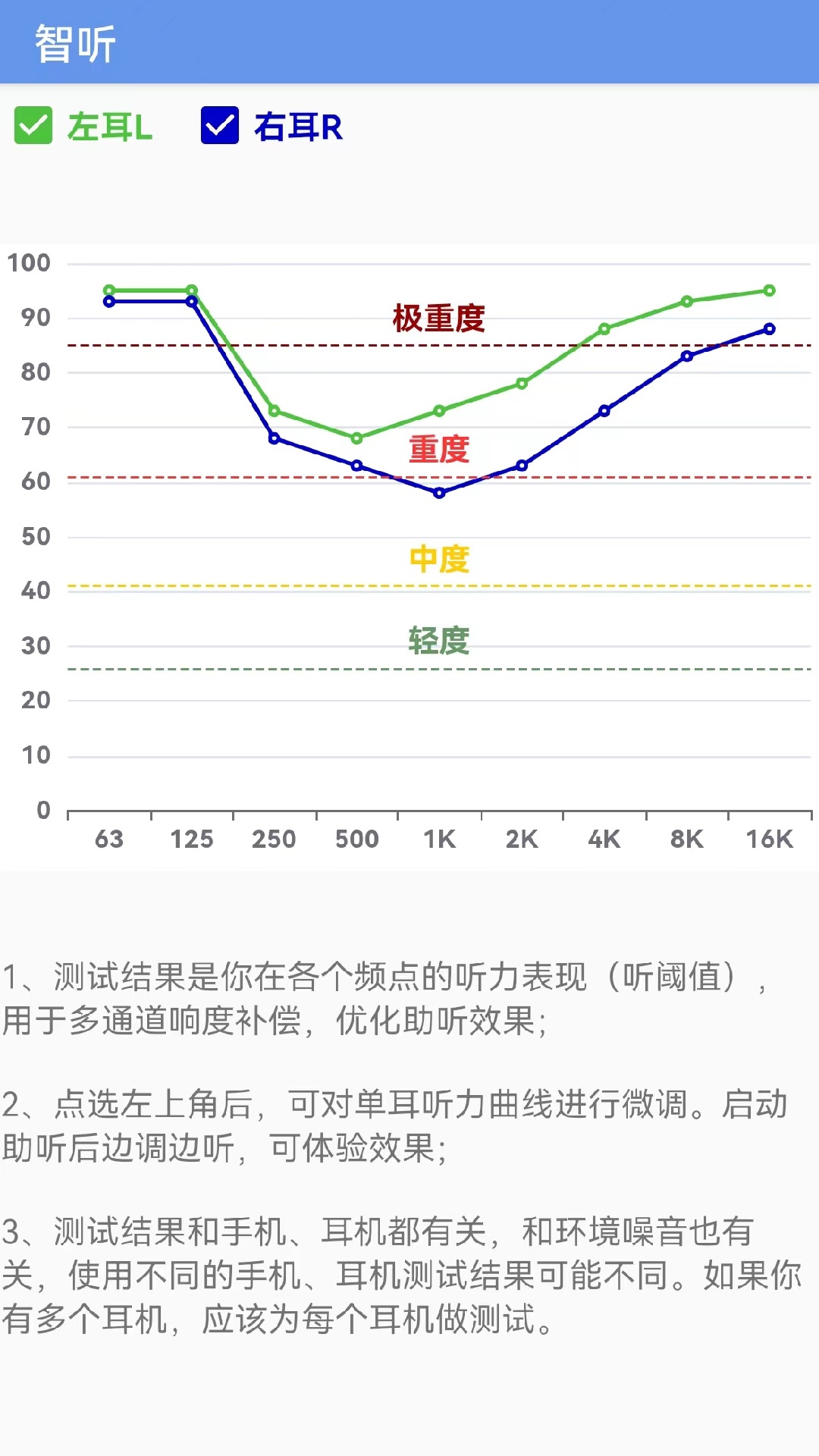 1、详细记录:自动记录用户的助听历史,随时查看记录,了解自身听力情况变化,作出相应调整;