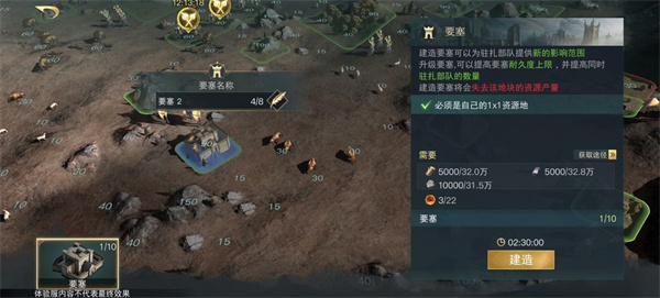 所以要打远一点地我们就必须建要塞,最好是卡主城范围起要塞