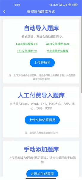 a、自动导入题目,支持各种常见题目格式,包括选择题、填空题等,省去了繁琐的输入过程;