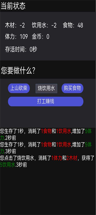 山林休闲是一款独特且有趣的冒险类文字游戏,在这个游戏中,玩家将面临荒岛的困境,需要通过生存与资源利用来解决,同时,玩家还需要探索并掌握各种技能,努力在这个陌生而危险的环境中生存下去,此外,游戏中的环境描绘以及生存机制,将带给玩家一场真实而刺激的挑战。