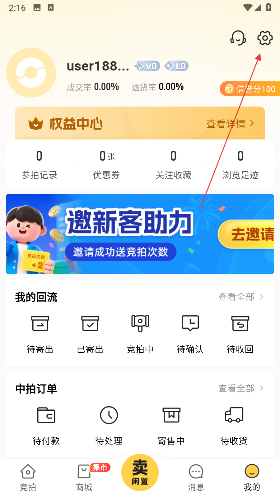 2、在个人页面中,点击右上角的设置图标,进入账户设置界面。