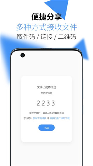 1、提供多种接收文件的方式,用选择通过取件码、链接或二维码进行接收灵活方便;