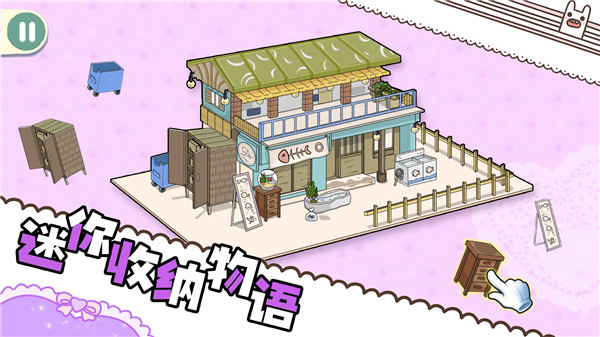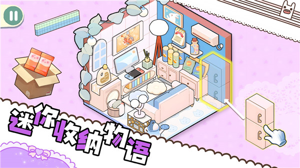 迷你收纳物语游戏是一款卡通风格的休闲益智类游戏,游戏中你将扮演一名收纳师,你需要做的就是将不同顾客的屋子收拾的整齐有序并且把房间装扮的更加好看,游戏画面主要选择暖色调,非常的温馨治愈,每一间顾客的房子都需要你去认真对待,就像是自己的房子一般,打理好每一间屋子和房间。