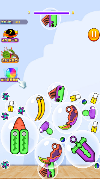 -【利用道具】:道具是帮助快速消除水果的工具,炸弹可以消除周围的水果,闪电可以消除一列的水果;