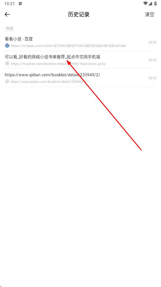3、在历史记录列表内,点击目标条目以可以看好看的网络小说书单推荐起点中文网手机端为例,即可自动跳转至此前浏览的起点中文网书单页面,续接之前的阅读轨迹。