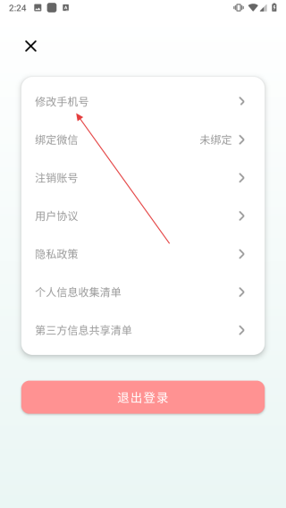 3、在账号相关设置界面,找到修改手机号选项并点击,进入修改手机号的输入页面。