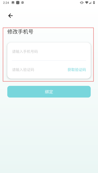 4、在修改手机号页面,输入新的手机号码,点击获取验证码,将收到的验证码输入后,点击绑定按钮。