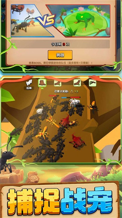 2、竖屏2D游戏,你可以直观的看到你的动物发展情况和战斗场面;