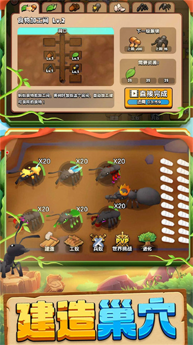 5、升级你的食物加工间以及其他的设施,能让你的族群更快的发展壮大。