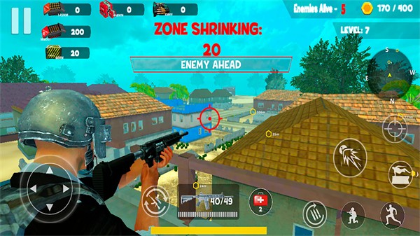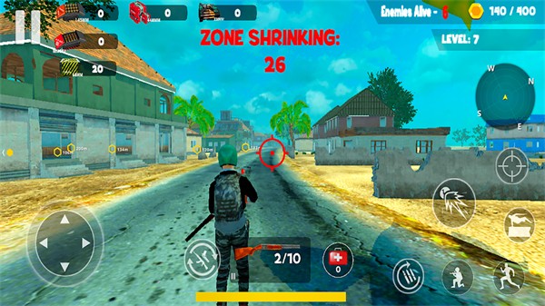 FPS大逃杀手游是一款以冒险和竞技为主题的射击类游戏,可以实现第一人称视角和第三人称视角的相互切换,为玩家提供了自由的游戏体验,在这个游戏中,玩家将扮演一名射击手,可以在一个3D场景中进行自由探索,不断战胜其他玩家和AI敌人,并收集场景中的道具和资源,最终顺利逃离战场。