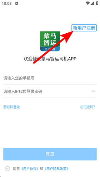 1、进入登录界面后,点击新用户注册,进入注册的流程。