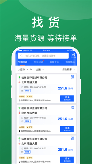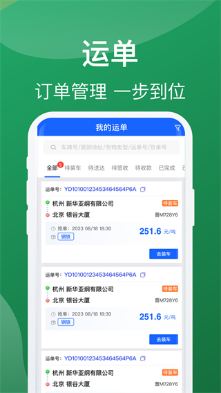 4、极致的接单体验,提升了行业的货车与货物的匹配效率,还能便捷进行管理。