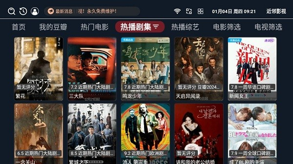 近邻影视最新版是一款专为影视剧迷打造的在线影视播放工具,它拥有全新的界面设计和便捷的操作方式,为你提供了丰富的影片资源,无论是热门的电视剧还是经典电影,都可以在这里找到,只需一键点击,即可享受高清流畅的观影体验,无需等待繁琐的下载过程,此外,它还支持在线订阅功能,确保你能随时掌握最新的影片更新,此外还提供了智能推荐和搜索功能,有助于快速找到心仪的影片,无论是追剧也好,休闲娱乐也罢,它都能满足需求,方便能尽情享受影视剧的乐趣。