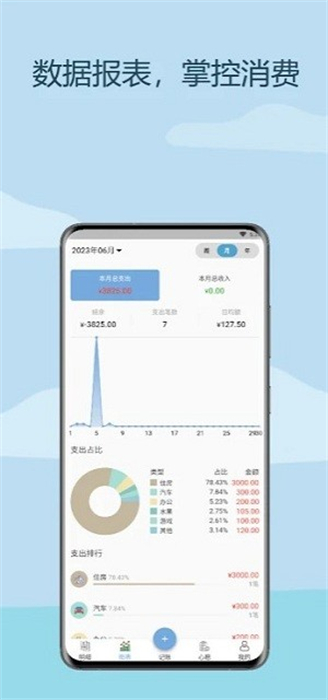 4、智能统计:能按账数据生成清晰的图表和报表,方便分析和理解自己的消费习惯;