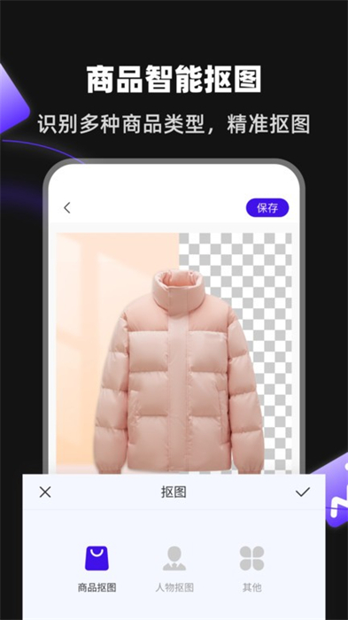 1、一键抠图:只需点击一下,就能自动抠出图像中的主要物品或人物,省去繁琐步骤;
