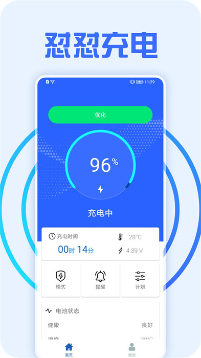 怼怼充电app是一款十分好用的常用工具类软件,是一个专门为了用户进行优化电池的软件,为用户提供了许许多多丰富的优化服务,让用户可以随时满足自己的优化需求,软件涵盖了快捷充电和内存清理等优质的服务,能有效的减少待机的时长,在线一键进行查看,可以知晓到目前的手机电量。