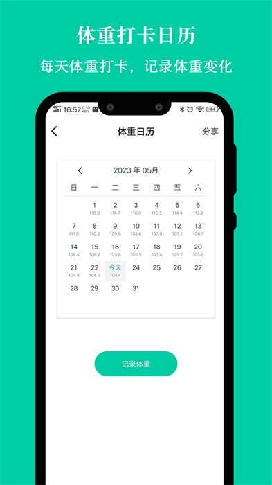 ②、体重记录,所有的体重变化都能记录下来,并能感受到更多的科学减肥效果;