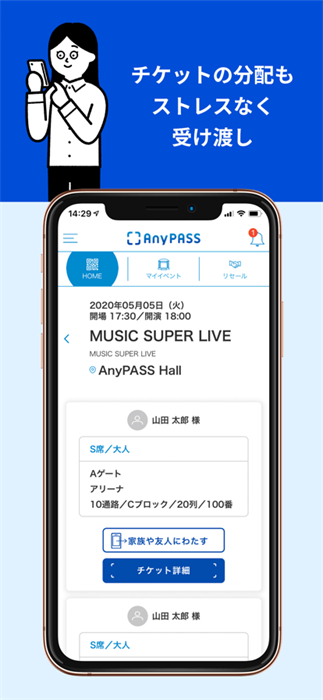 anypass安卓专为日本用户设计的在线抢票工具,在这里它能够帮我们迅速购入感兴趣的门票,只需扫描软件所提供的二维码信息即可轻松知晓详细演出的详细资料,其中包括演出人员、时间和地点等,如果我们在演唱会当天有事还能通过app进行快速转让,保证不会浪费门票以及购入资金,同时它的操作非常简单,支持多种语言在线进行切换使用,这样使得不懂日语的用户也可轻松上手,快来用它一起观看一场精彩的演出赛事吧。