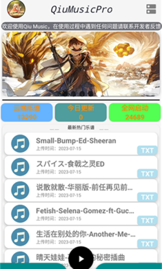 1、下载打开原神自动弹琴QiuMusicPro,进入主页,点击正下方的播放按键;