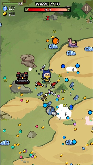 4、不断收集场景中的彩色宝石以及石块,这些物品可用于商品购买;