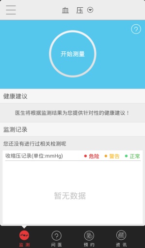 自主在家检测,专业医用设备支持,比如血压、血脂等,数据同步云端平台,智能分析健康情况,实时健康预警;