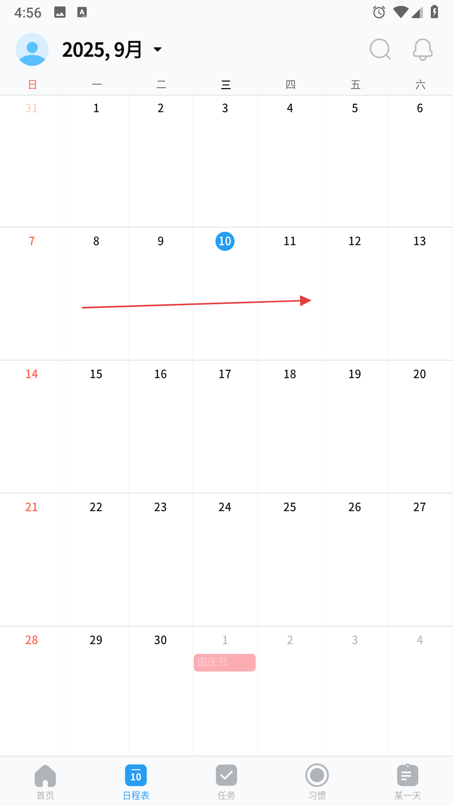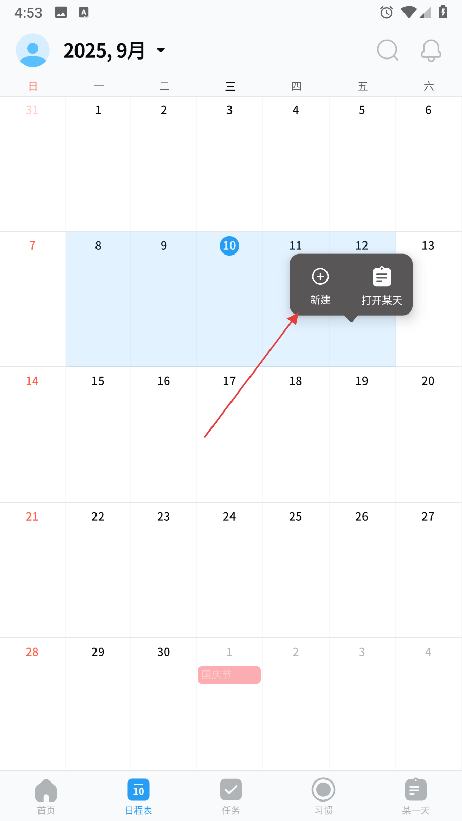 1、打开时间块APP,进入日程表页面,长按需要创建日程的日期区间。