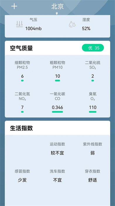 3、详细的天气数据和人性化的操作体验,让用户轻轻松松的获取到天气的信息;