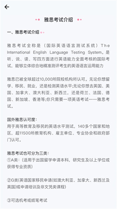 去学雅思软件是一款拥有超多精品课程的雅思学习软件,每天可以在线预约一些学习的直播课程,能够和专业的老师进行线上对话,解决了很多常见的问题,也能让知识变得更加易懂,软件在不定期会根据用户当前的学习状态生成考试试卷,致力于让每个小伙伴都能清晰的了解到自己的弱点,也能更好的掌握知识,随时随地可以打开软件进行复习管理,以便能更快地看到学习成果。