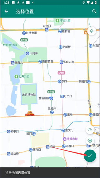 2、在地图上选择自己要模拟的位置,然后勾选对号;