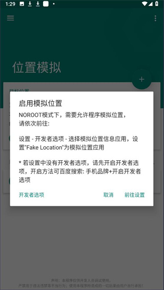 4、根据提示,打开对应选项,即可开启位置模拟。