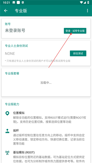 3、在专业版页面,点击登录·试用专业版按钮,进入登录页面。