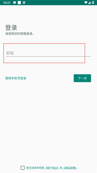 4、在登录页面,输入邮箱,点击下一步按钮,按照提示完成登录操作。