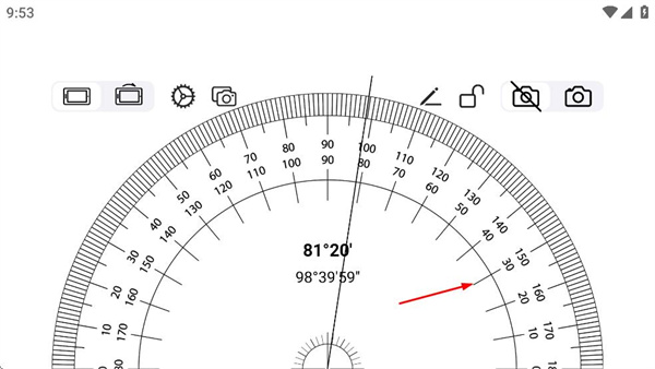 2、调整角度测量的相关标识,使测量指针对应到目标角度区域,查看更新后的角度数据。