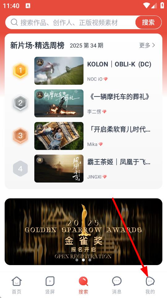 1、打开新片场APP,进入首页后,点击底部导航栏最右侧的我的选项,进入个人页面。