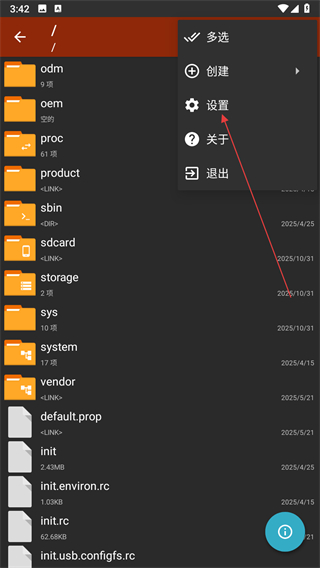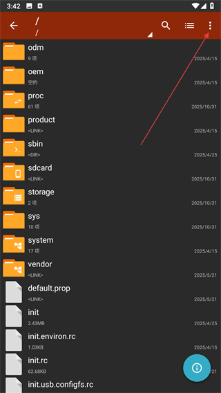 1、打开老外管理器应用,点击三点图标。