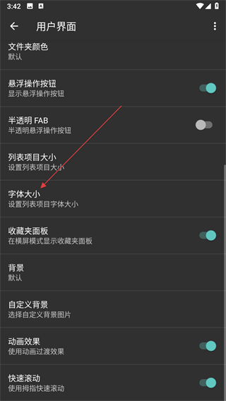 4、在用户界面设置页面,点击字体大小选项。