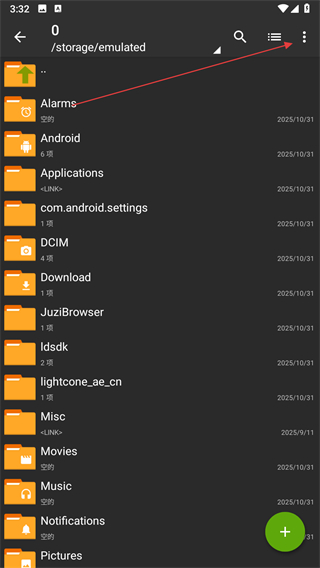 1、打开老外管理器应用,点击三点图标,弹出功能菜单。
