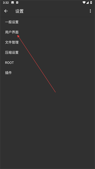 3、在设置页面,点击用户界面选项,进入用户界面设置页面。