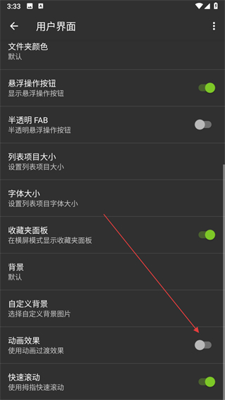 4、找到动画效果选项,点击其右侧的开关按钮,将其开启。