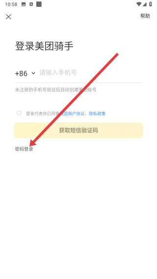 2、在进入到登录页面中时,可以点击下方密码登录按钮,切换登录方式。